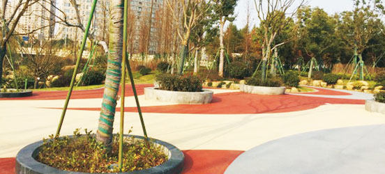 廣霸透水混凝土,擁有自主研發(fā)的膠結料,同時多年的施工經驗總結了科學合理的配比方案(骨料、水泥、膠結料、顏料、水等),確保了施工路面具有良好的美觀性、抗壓性、透水性效果。